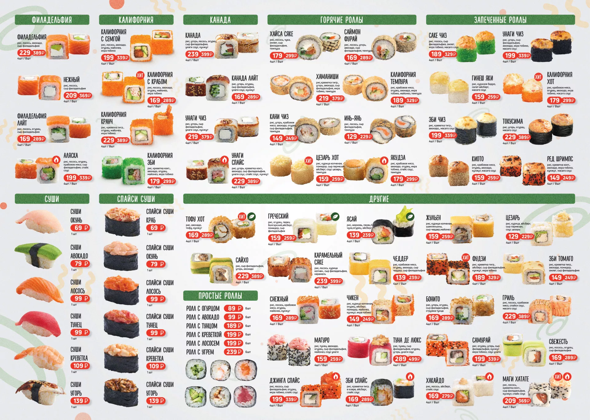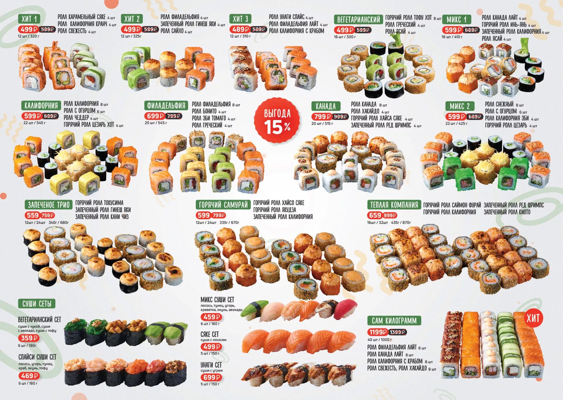 Оформление меню суши-бара «Roll Wok Club» в Искитиме